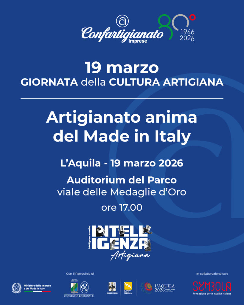 Il 19 marzo, a L’Aquila, Capitale italiana della Cultura 2026, Confartigianato celebra la 5° edizione della Giornata della cultura artigiana con il convegno dal titolo “Artigianato anima del made in Italy”, un confronto con rappresentanti delle istituzioni locali e del Governo, con esperti, accademici e imprenditori per mettere in luce l’Italia dei piccoli imprenditori che trasformano la tradizione in innovazione.
